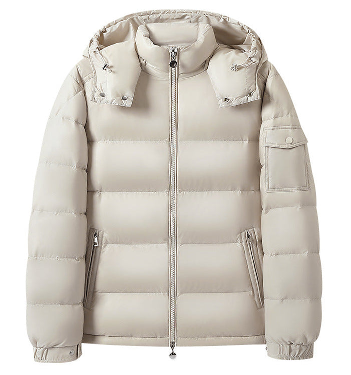 • Simple, stylish design with zipper, hood and stand-up collar.